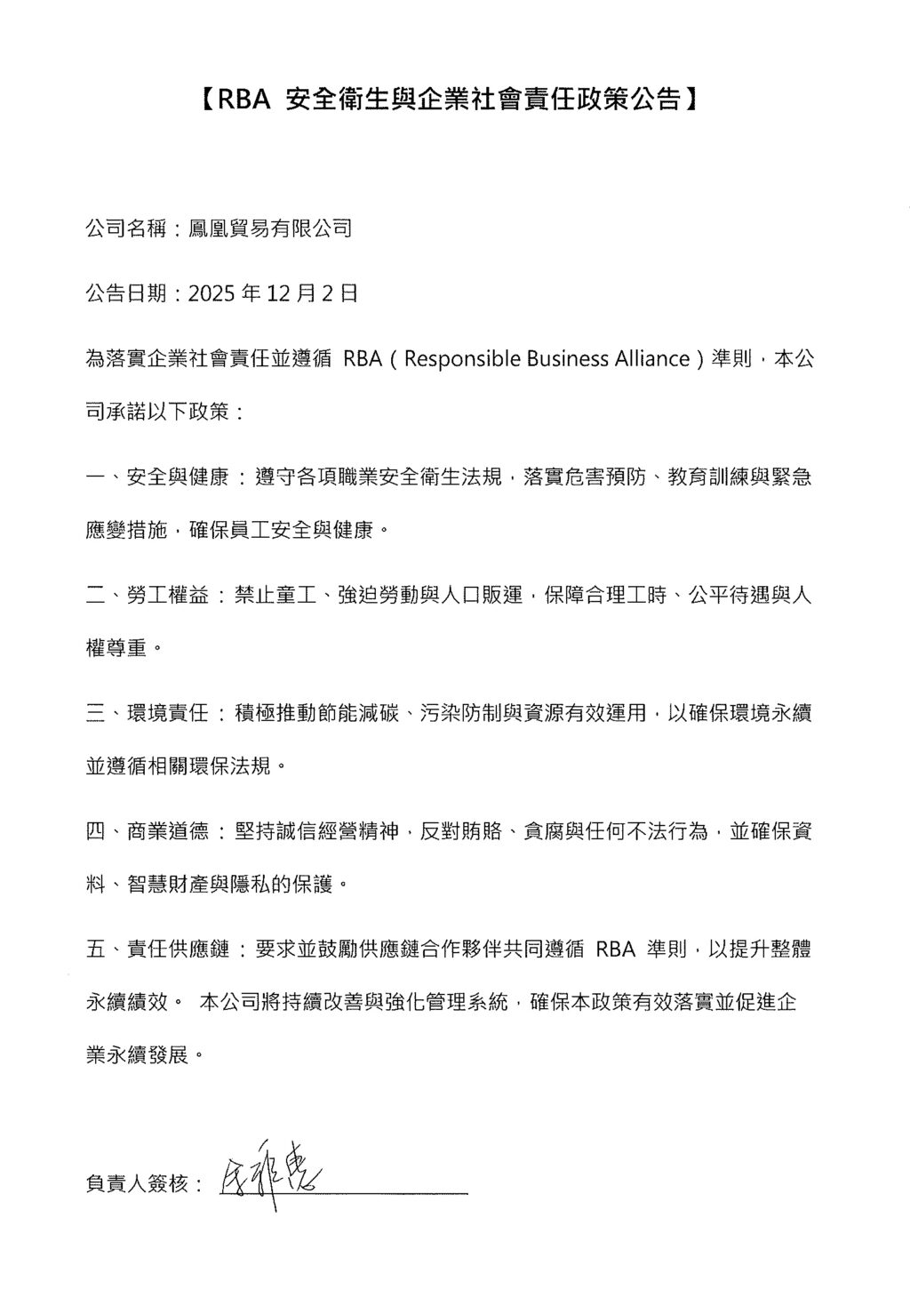 - 負責任商業聯盟(RBA)行為準則 8.0 版